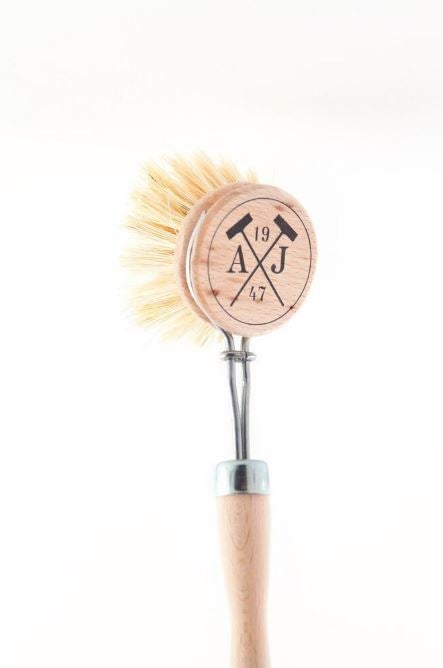 A simple, efficient and elegant dish brush made from genuine French beechwood with tough mixed vegetable fibers. Naturally abrasive with a smooth texture that does not harm your dishes.