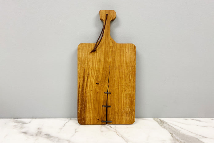 The juxtaposition of old versus new is ever-present with the Budapest Boards. Made from the end pieces of reclaimed beams, these decorative boards create zero waste and continue our efforts of full-circle sustainability. Budapest was created in the late 17th century when neighboring cities, Buda and Pest, merged to form a new city. The two sides are connected via bridges as a river runs between them - this inspired the design of the Budapest Boards, which feature cracks that are connected by oversized staples.