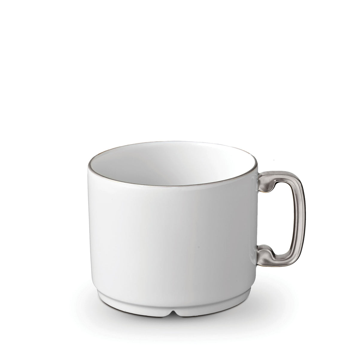 Porcelain Mug with ornate handle in 24K gold, platinum, or white. Inspired by the first of China's four great dynasties, yet unmistakably modern in sensibility. The techniques used set L’Objet apart from all others and are entirely unique. Every piece bearing the mark of L’Objet has been touched by the hand of a master, and is held to the highest standards of material selection, creativity, and craftsmanship.
