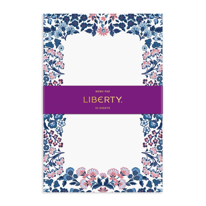 Liberty London is known for its floral and graphic prints and the offering of innovative and eclectic designs. The Liberty Tanjore Gardens Memo Pad from Galison features a classic colorful floral pattern border around unlined white paper for writing notes.