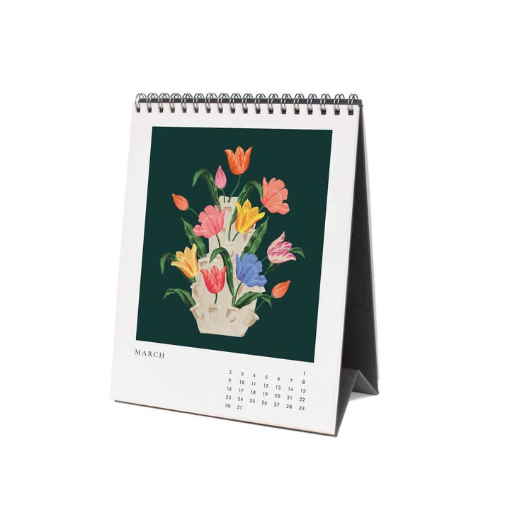 A little something floral for each month of the year. This Flower Studies desk calendar features 12 fresh and floral illustrations, and the attached stand makes it easy to prop up at work or home.