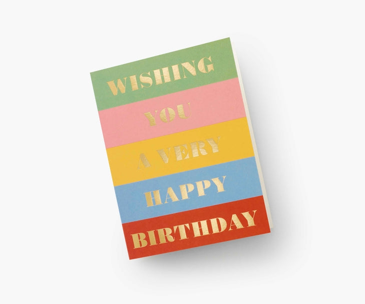 Say “Happy Birthday” with style! This Rifle Paper Co Card features a beautiful color-block design with gold details for an extra-special touch. Make any birthday even more special by sending your best wishes on this cheerful card!