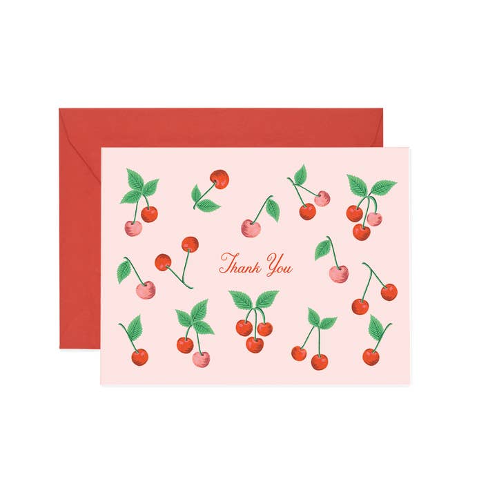 Say 'thank you' in style with this Rifle Paper Co card, featuring gorgeous cherries! Send your gratitude across the miles with this cheerful card, and leave a lasting impression.