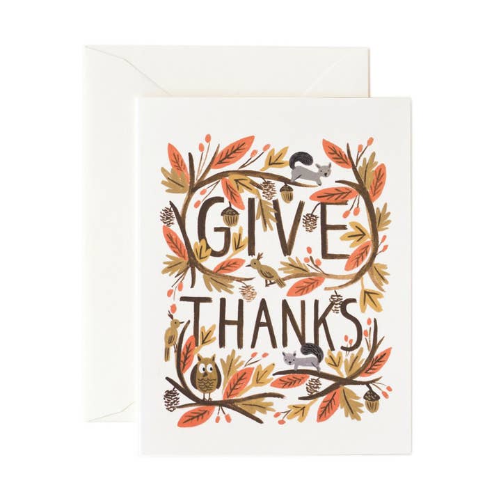 Show loved ones that you're thankful for them this season. A blank interior lets your handwritten note take center stage.