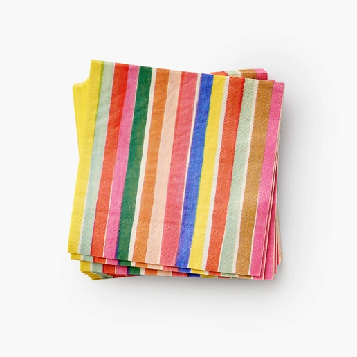 These cocktail napkins feature cheerful stripes that make any cocktail, juice, or snack extra-happy.