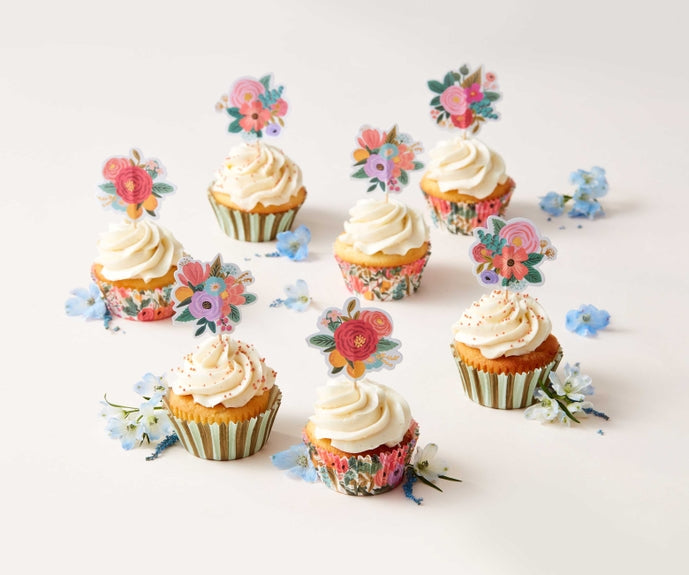 Our Garden Party cupcake kit will make your homemade sweet treats even more special. The kit contains 24 assorted liners and 24 assorted toppers, with illustrated designs and gold foil accents.