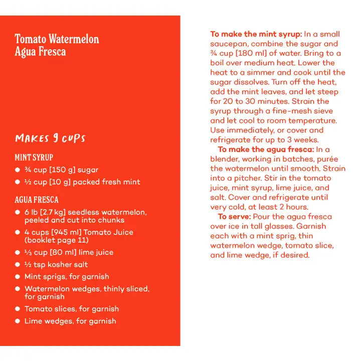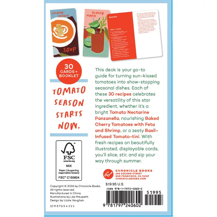 With fresh ideas for drinks, apps, jams, dips, spreads, and main courses on beautifully illustrated, displayable cards, you’ll slice, stir, and sip your way through summer. An included booklet contains building-block recipes to take your tomato cookery up a notch.